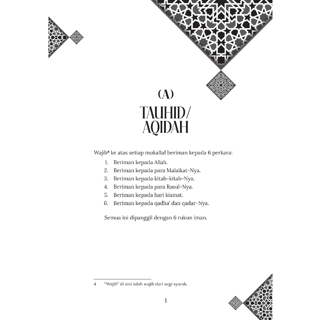 Maka buku ini hadir menjelaskan secara ringkas dan padat asas-asas dan rukun-rukun agama yang mesti difahami setiap Muslim dan Muslimah merangkumi ilmu: