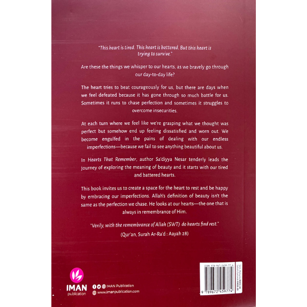 This book invites us to create a space for the heart to rest and be happy by embracing our imperfections. Allah’s definition of beauty isn’t the same as the perfection we chase. He looks a tour hearts––the one that is always in remembrance of Him.