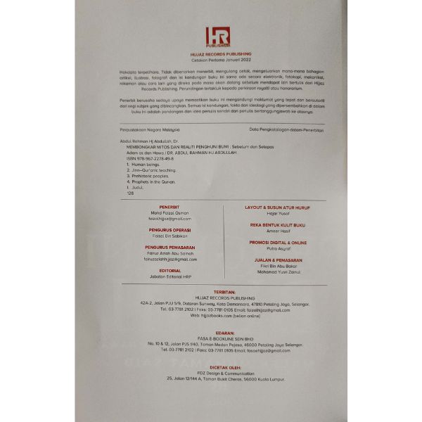 Buku ini digarap daripada pelbagai sisi inspirasi dan stalistik (penyusunan ilham dan gaya  penulisan ) sama ada genre fiksyen (fantasi) atau bukan fiksyen (faktual). Genre fiksyennya meliputi pelbagai naratif dongengan, cerita rakyat , penglipur lara, mitos, lagenda, roman, hikayat dan pelengkapnya kisah atau riwayat israiliyyat. Citra faktualnya diserlahkan dengan sokongan keterangan al-Quran dan hadis Nabi. Lazimnya, apabila sesuatu periwayatan melalui tempoh masa yang panjang maka pelbagai unsur Israiliyyat turut menyelinap masuk apatah lagi sumber kisah atau riwayatnya hanya berdasarkan tafsiran para sahabat, tabi’in dan tabi’ut tabi’in yang tidak berakhir dengan Rasulullah. Sudah termaklum, intipati kisah atau riwayat Israiliyyat sekadar pengulangan apa yang pernah diulang-ulang sebelumnya sehingga berlakunya beberapa tokok tambah dan pengurangan . Terkadang kala, naratif sesuatu kisah atau riwayat Israiliyyat itu seperti sebuah sketsa yang menyampaikan sesuatu pada asalnya ‘berita benar’ yang berakhir dengan ‘berita palsu’. Dari sudut tawasur Islam, segala ilmu pengetahuan dan pelbagai maklumat tentang segala sesuatu fenomena, kejadian atau peristiwa atau kisah-kisah yang pernah berlaku sewajarnya dijadikan iktibar, contoh teladan, pengajaran dan peringatan kepada umat manusia pada masa kini dan akan datang. Pelbagai maklumat tersebut adalah sebahagian daripada khabar atau berita ghaib yang hanya disampaikan melalui kitab-kitab suci agama-agama samawi khususnya Kitab al-Quran. Pelbagai peristiwa dan tragedi dahsyat yang pernah menimpa umat-umat terdahulu (golongan jin dan manusia) hanya disebabkan oleh kerakusan, kesilapan dan kelalaian mereka sehingga terlanjur melakukan tindakan yang melampaui batasan. Disebabkan kufur dan fasik terhadap Allah Ta’ala, mereka tergamak melakukan pelbagai kemungkaran, kezaliman, kekejaman serta penindasan sesama sendiri sehingga menimbulkan pelbagai bencana dan kerosakan di muka bumi. Semoga buku ini  bermanfaat dalam memberikan ibrah atau pengajaran, memberikan panduan agar berhati-hati terhadap dakyah musuh-musuh Islam, membantu menjadi seorang muslim yang lebih arif dalam memilih, meneliti dan melakukan pertimbangan akal budi berkaitan apa yang betul dan apa yang salah atau sesuatu yang hak dengan sesuatu yang batil , insya Allah.