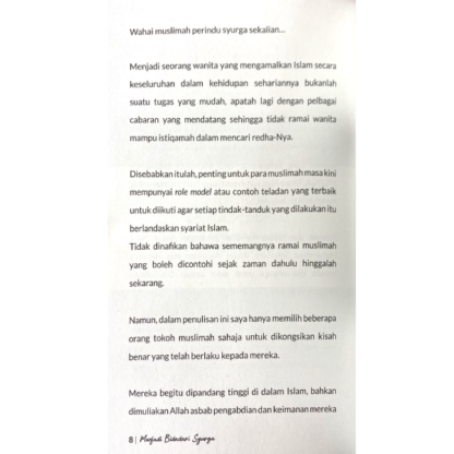 Menjadi seorang wanita yang mengamalkan Islam secara keseluruhan dalam kehidupan sehariannya bukanlah suatu tugas yang mudah, apatah lagi dengan pelbagai cabaran yang mendatang sehingga tidak ramai wanita mampu istiqamah dalam mencari redha-Nya.