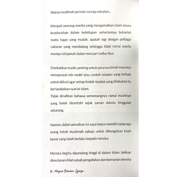 Disebabkan itulah, penting untuk para muslimah masa kini mempunyai role model atau contoh teladan yang terbaik untuk diikuti agar setiap tindak-tanduk yang dilakukan itu berlandaskan syariat Islam.