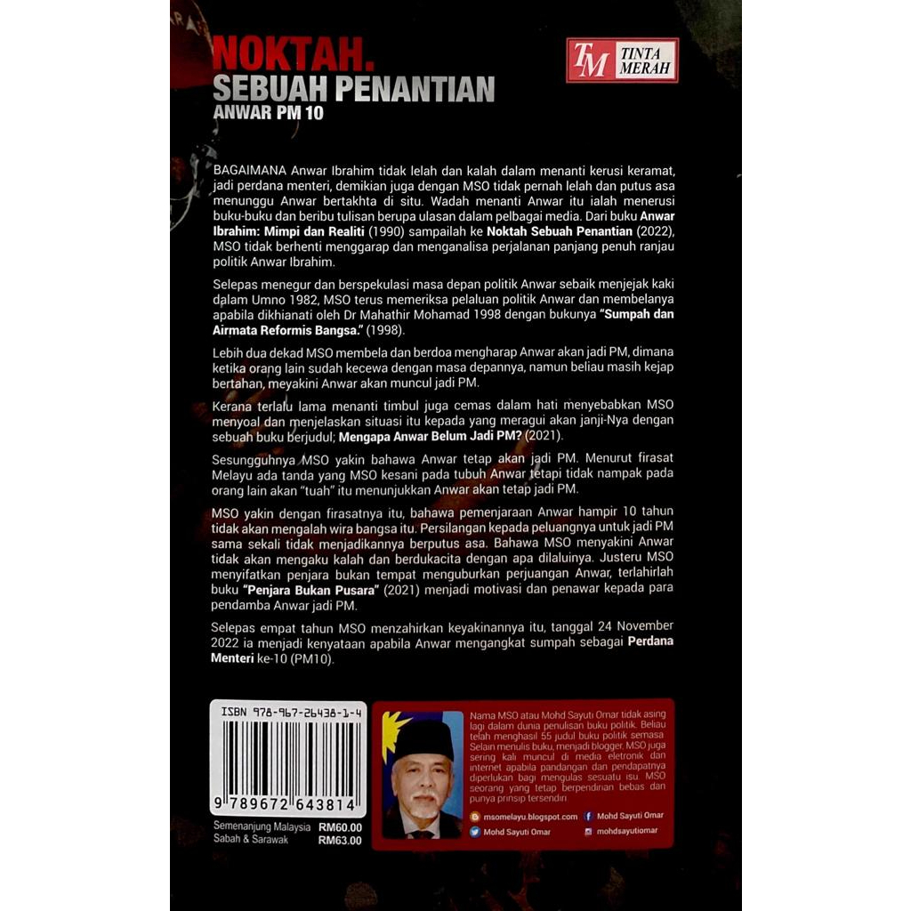 BAGAIMANA Anwar Ibrahim tidak lelah dan kalah dalam menanti kerusi keramat, jadi perdana menteri, demikian juga dengan MSO tidak pernah lelah dan putus asa menunggu Anwar bertakhta di situ. Wadah menanti Anwar itu ialah menerusi buku-buku dan beribu tulisan berupa ulasan dalam pelbagai media. Dari buku Anwar Ibrahim: Mimpi dan Realiti ( 1990 ) sampailah ke Noktah Sebuah Penantian ( 2022 ), MSO tidak berhenti menggarap dan menganalise perjalanan panjang penuh ranjau politik Anwar Ibrahim.