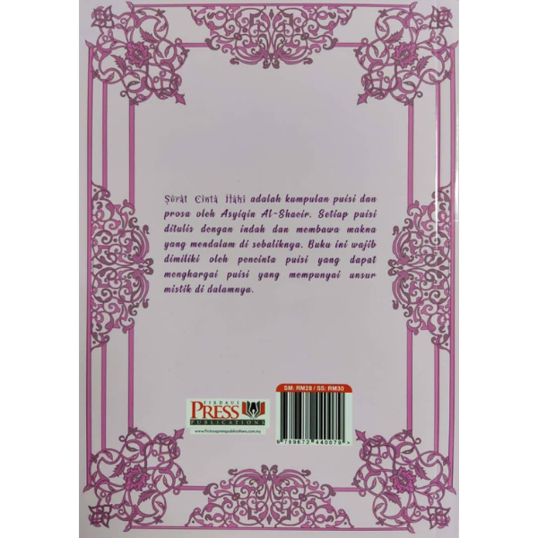 SURAT CINTA ILAHI adalah kumpulan puisi dan prosa oleh Asyiqin Al-Shaeir. Setiap puisi ditulis dengan indah dan membawa makna yang mendalam di sebaliknya. Buku ini wajib dimiliki oleh pencinta puisi yang dapat menghargai puisi yang mempunyai unsur mistik di dalamnya.
