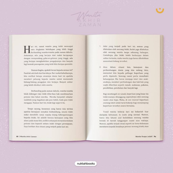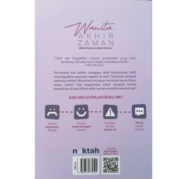 Lebih menarik lagi, buku ini memaparkan cabaran-cabaran wanita muslimah akhir zaman dalam menghadapi musuh Islam yang ingin menghancurkan dan meruntuhkan nilai agama dalam diri wanita.